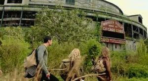 Their humble existence is interrupted with a visit by militia men, led by Captain Tom Neville (Giancarlo Esposito), belonging to a local tyrannical power called the Monroe Republic. Neville was sent by the Republic’s despot General Sebastian Monroe (David Lyons) to conscript Ben. During a melee Ben is killed and Danny is taken prisoner by the militia. Before Ben died he entrusted an amulet to Maggie and his friend Aaron Pittman (Zak Orth), which is capable of generating small amounts of electricity. What this means has not been revealed nor what caused the blackout. On Ben’s dying advice Charlie, Maggie and Aaron travel by foot to the decaying city of Chicago and recruit Miles for help in liberating Danny.